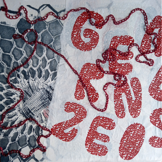 Trio GRENZENLOS_02, Siebdruck, BW Garn, 30×30 cm
