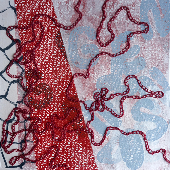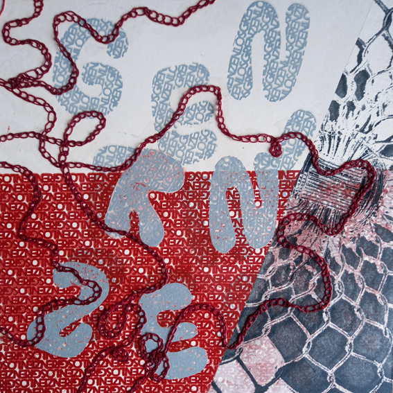 Trio GRENZENLOS_03, Siebdruck, BW Garn, 30×30 cm